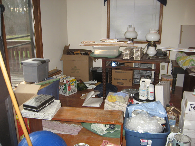 At one point, it was driving me SO crazy, I went out and purchased a bunch of tubs from Lowe's and organized all the clutter, being sure to label the tubs. I had an electrical tub, a plumbing tub, a tiling tools tub, etc. It really helped to organize the chaos so we could find what we needed when we needed it.