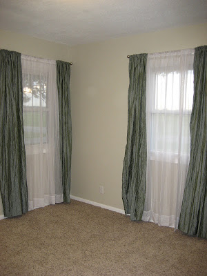 The green panels shown in the moodboard are just $29 each from Target. And I've found similar curtain panels for even less than that at Garden Ridge and Lowe's (especially check out their curtains on clearance!). I think we got the blue panels from Lowe's for about $14 each. Or, ribbon could simply be added to the existing white panels to dress them up a bit. I'd do a google search on that. I'm sure there are great tutorials out there on that.