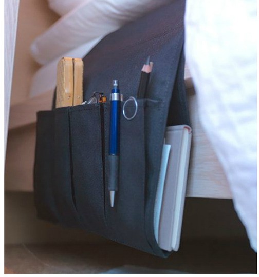 And here are just a couple other small space storage solutions included in the catalog that I thought were absolutely fabulous - a place to store your books and writing utensils within reach in bed...